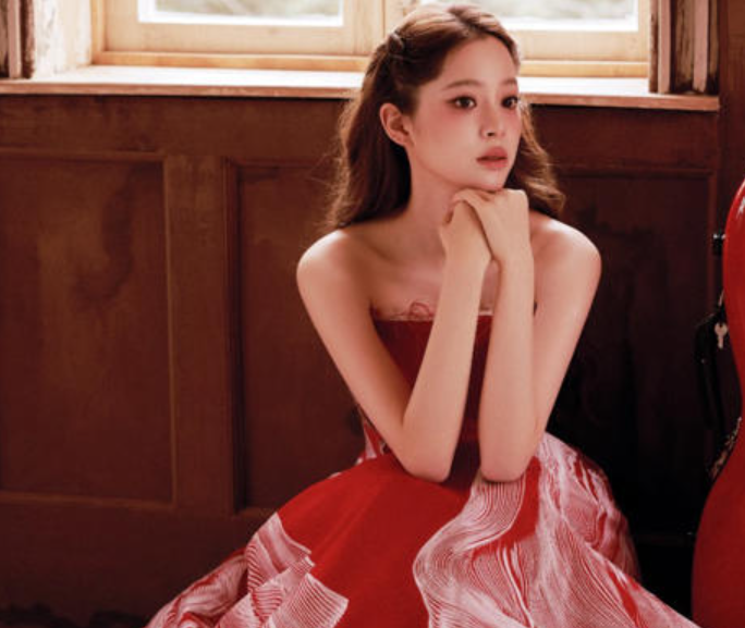 欧阳娜娜身着一袭红裙如火焰般绽放